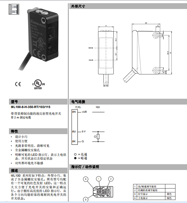 ML100-8-H-350-RT-95-102,漫反射型傳感器.