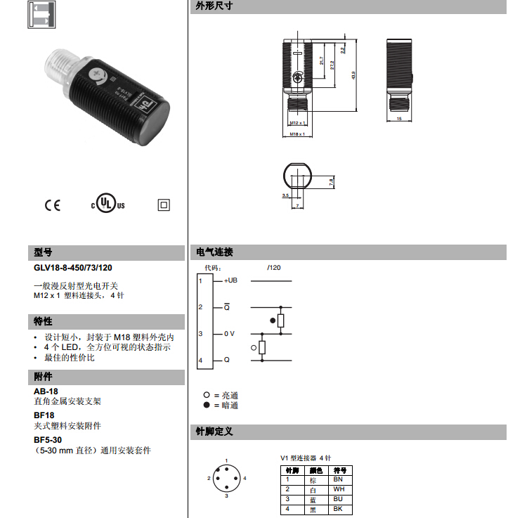 GLV18-8-450-73-120,漫反射型傳感器.