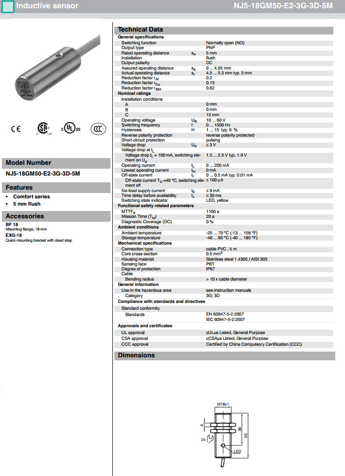 NJ5-18GM50-E2-3G-3D,NJ5-18GM50-E2-3G-3D-5M感應式傳感器