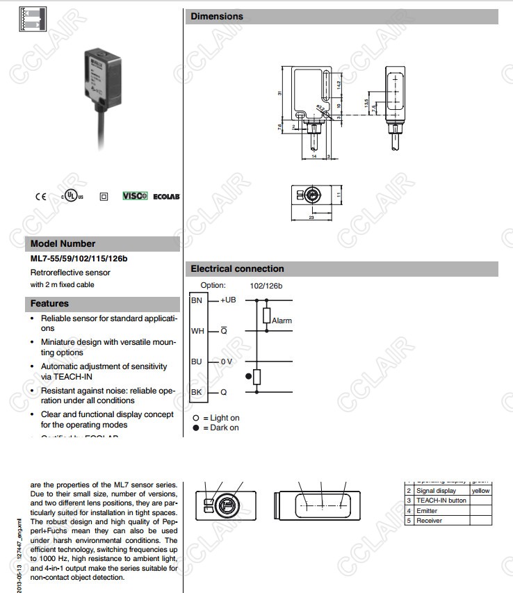 ML7-55/59/102/115/126b,反射板型傳感器