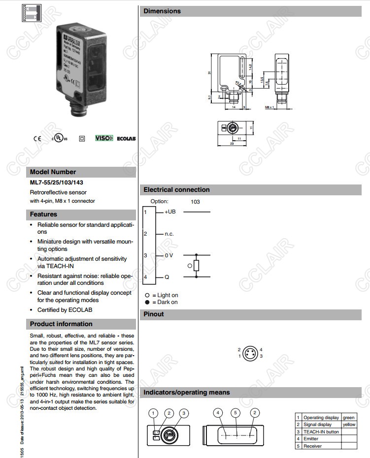 ML7-55/25/103/143,反射板型傳感器