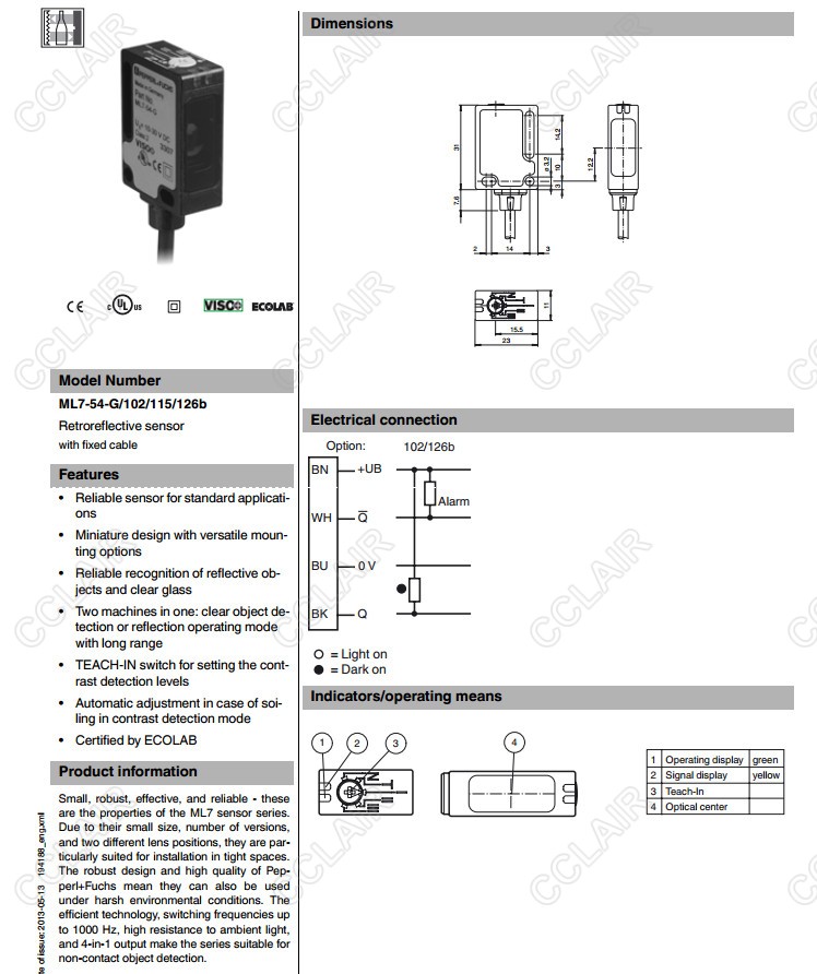 ML7-54-G-4541,ML7-54-G/102/115/126b,反射板型傳感器