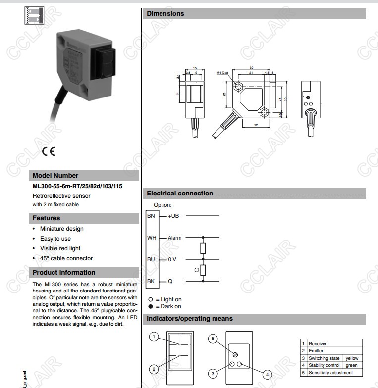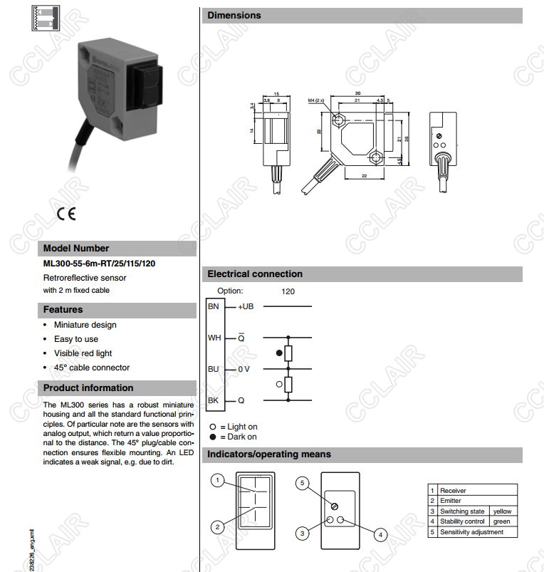 ML300-55-6m-RT/25/115/120,ML300-55-6m-RT/25/115/127,ML300-55-6m-RT/25/82d/103/115,反射板型傳感器 |