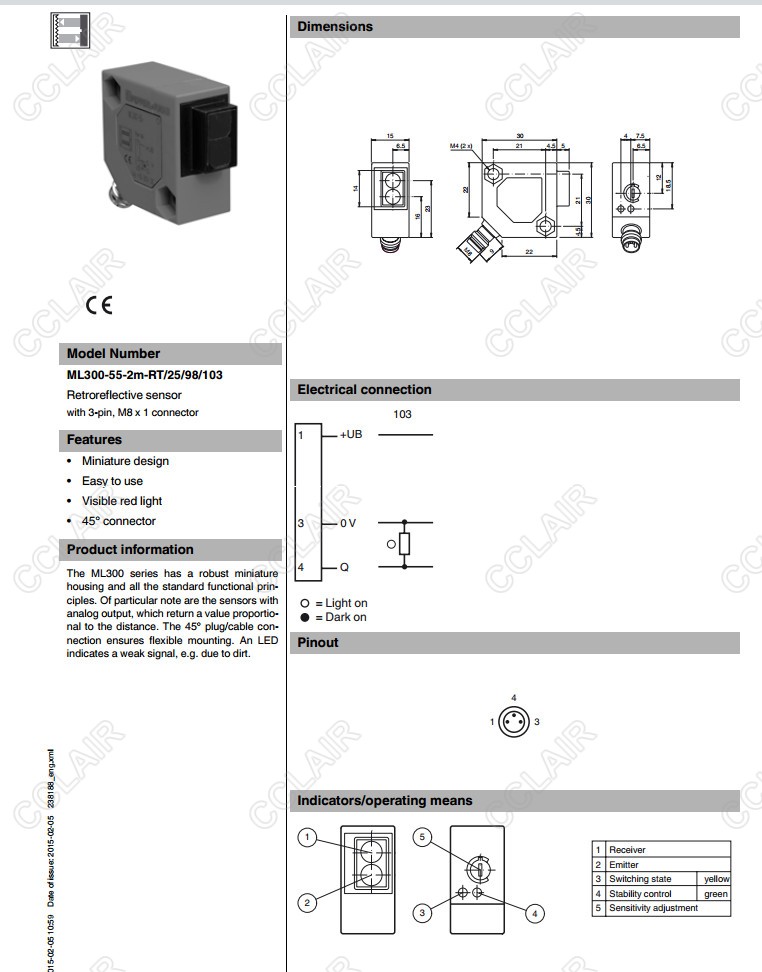 ML300-55-2m-RT/25/98/102,ML300-55-2m-RT/25/98/103,反射板型傳感器
