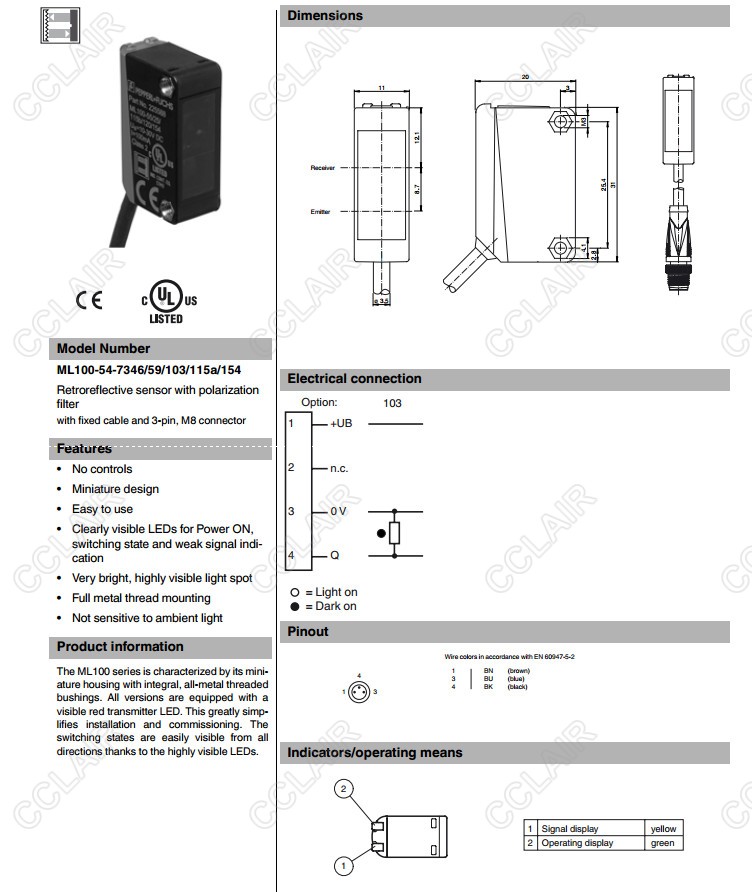 ML100-54-7346/59/103/115a/154,反射板型傳感器