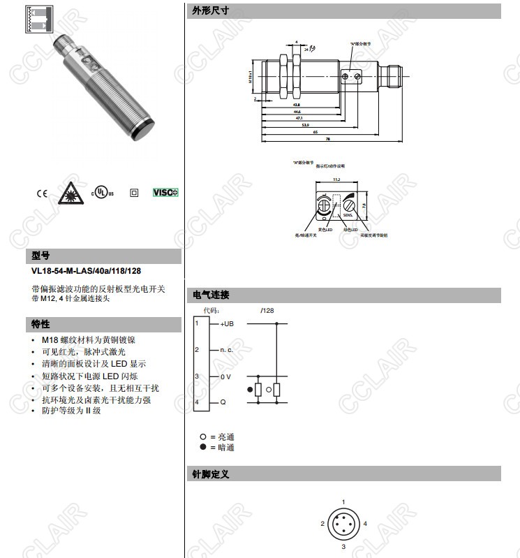 VL18-54-M-LAS/32/40a/82b/118,VL18-54-M-LAS/40a/118/128,反射板型傳感器