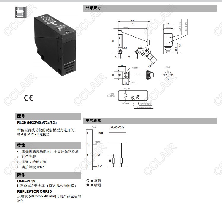 RL39-54/32/40a/73c/82a,RL39-54/32/40a/82a/116,反射板型傳感器