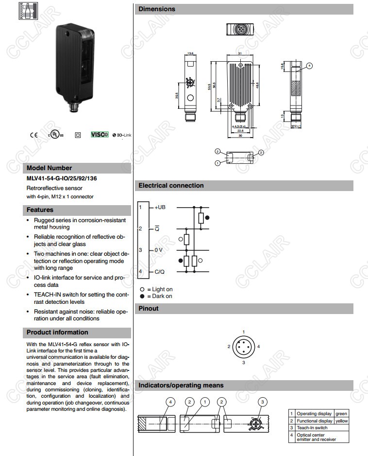 MLV41-54-G-IO/25/92/136,反射板型傳感器