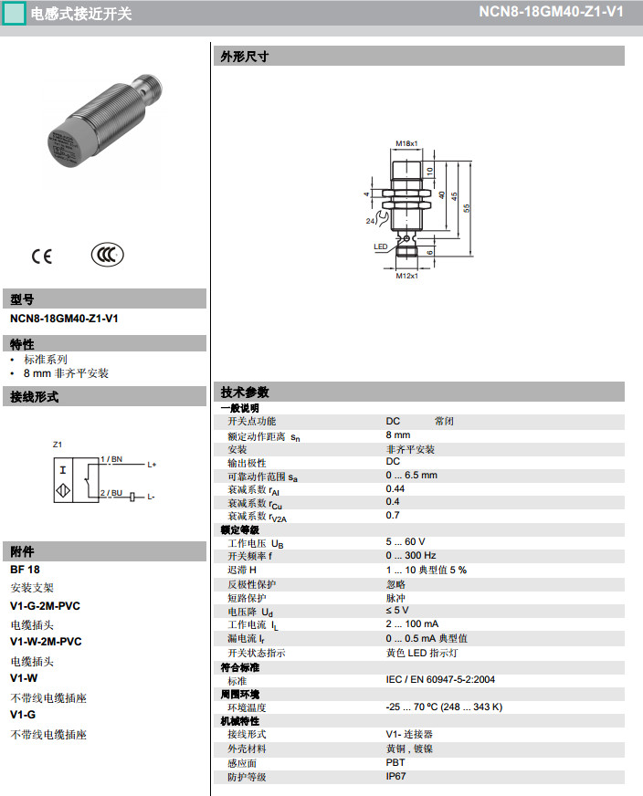 NCN8-18GM40-Z0-V1,NCN8-18GM40-Z1-V1感應式傳感器