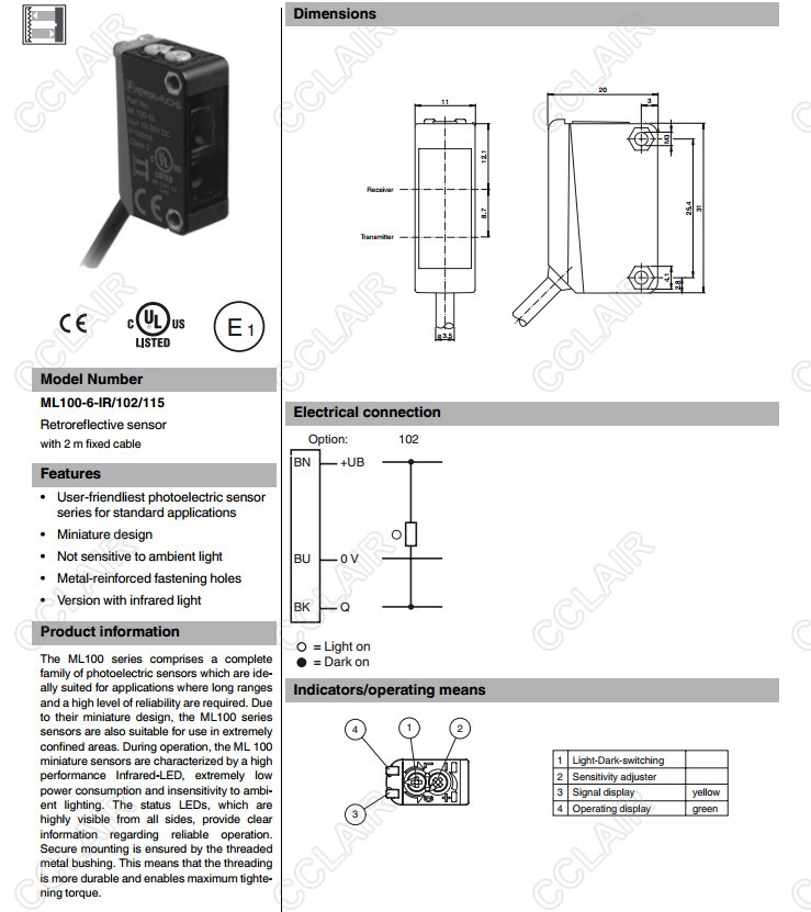 ML100-55-6086/102,ML100-6-IR/102/115,ML100-6-IR/103/115,反射板型傳感器