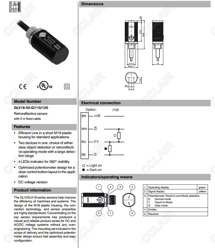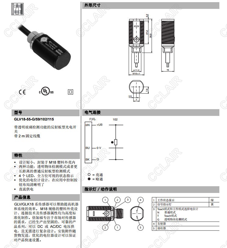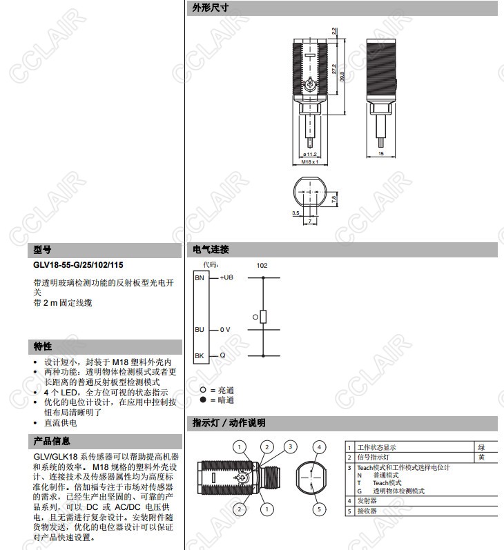 GLV18-55-G/115/120,GLV18-55-G/25/102/115,GLV18-55-G/59/102/115,反射板型傳感器