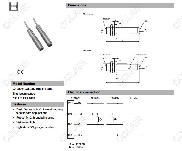 G12/GV12/33/36/40b/115-5m,對(duì)射型光電開(kāi)關(guān)