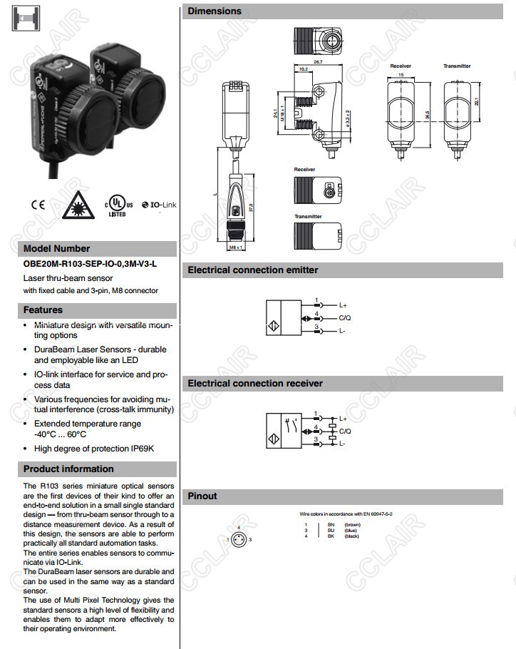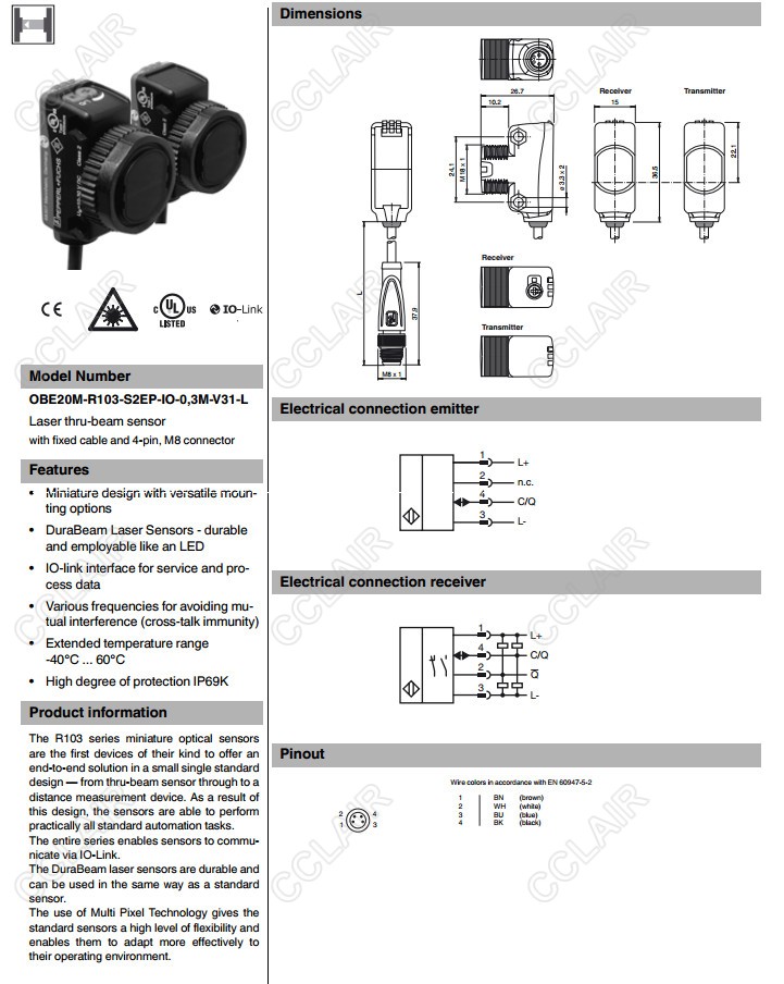 OBE20M-R103-S2EP-IO-0,3M-V1-L,OBE20M-R103-S2EP-IO-0,3M-V31-L,激光對(duì)射傳感器
