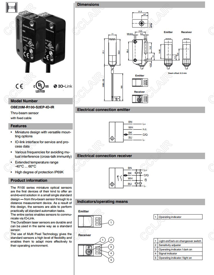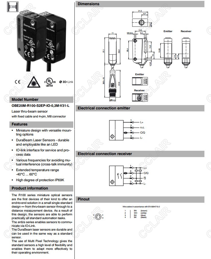 OBE20M-R100-S2EP-IO-0,3M-V1-L,OBE20M-R100-S2EP-IO-0,3M-V31-L,OBE20M-R100-S2EP-IO-IR,對射型傳感器 |