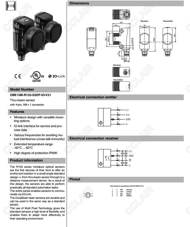 OBE10M-R103-S2EP-IO-V31,OBE10M-R103-SEP-IO-0/3M-V3,OBE10M-R103-SEP-IO-V3,對射型傳感器