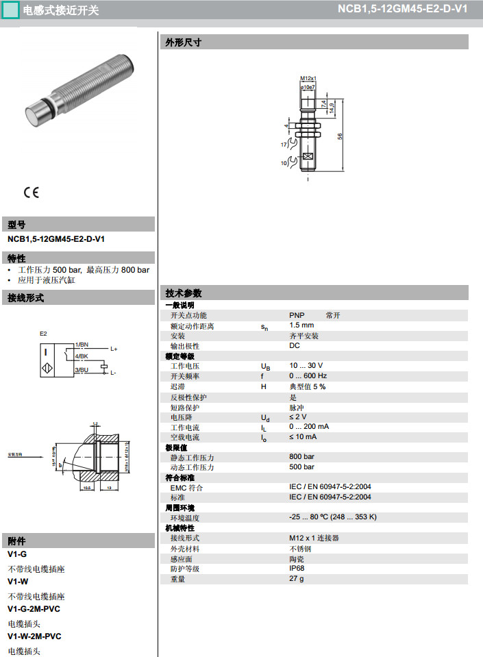 NCB1,5-12GM45-E2-D-V1感應式傳感器