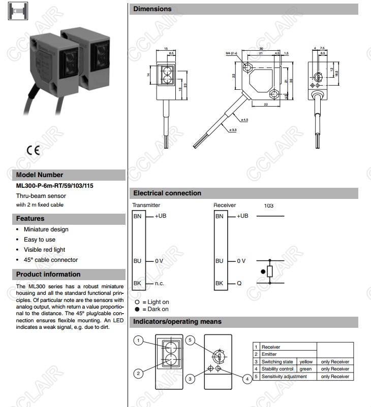 ML300-P-6m-RT/59/103/115,對(duì)射型傳感器