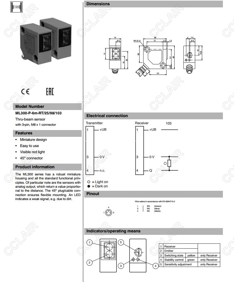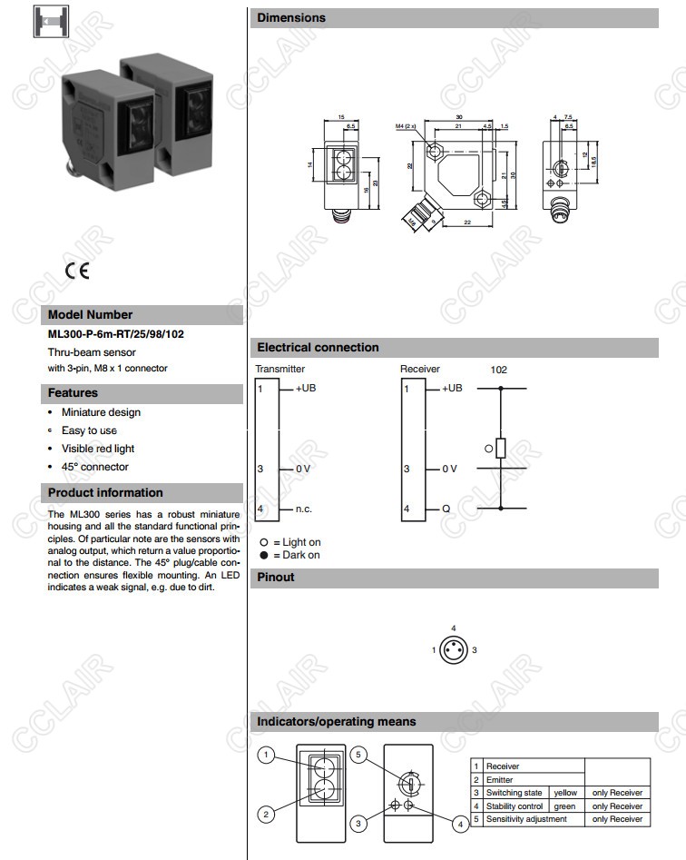 ML300-P-6m-RT/25/98/102,ML300-P-6m-RT/25/98/103,對射型傳感器