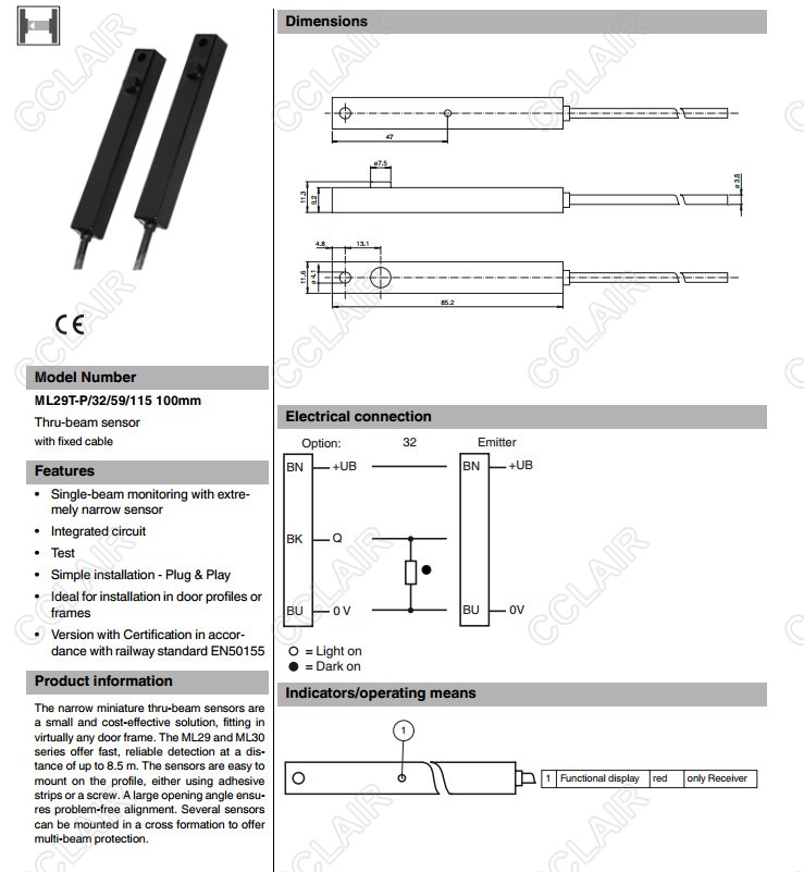 ML29T-P/32/59/115/100mm,對(duì)射型傳感器