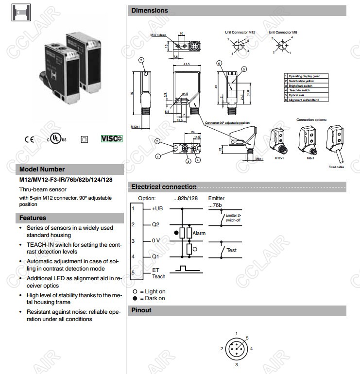 M12/MV12-F2-IR/76b/82b/124/128,M12/MV12-F3-IR/76b/82b/124/128,對射型傳感器