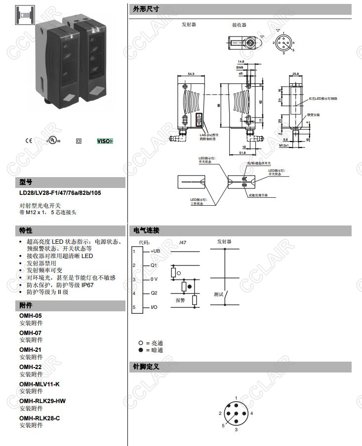 LD28/LV28-F1/47/76a/82b/105,對(duì)射型傳感器