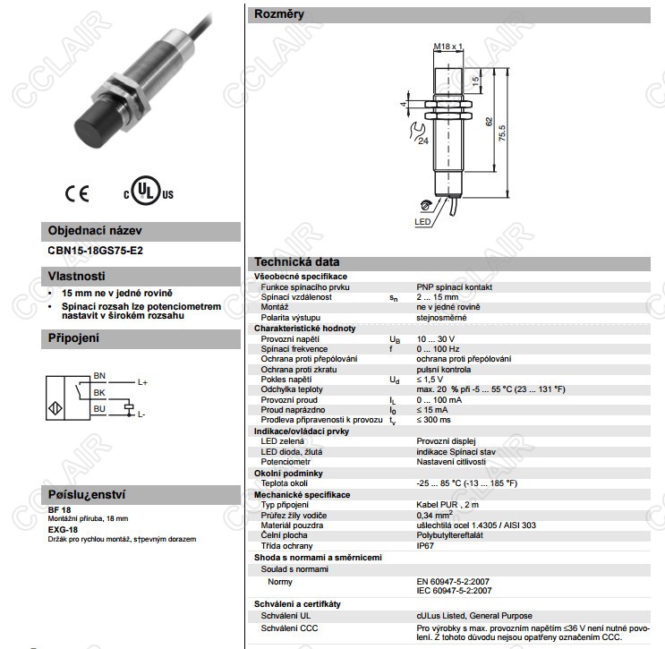 CBN15-18GS75-E2,電容式接近開(kāi)關(guān)