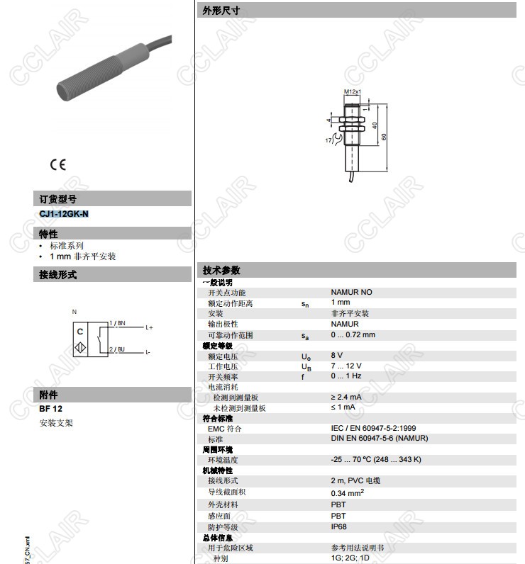 CJ1-12GK-N,電容式接近開(kāi)關(guān)