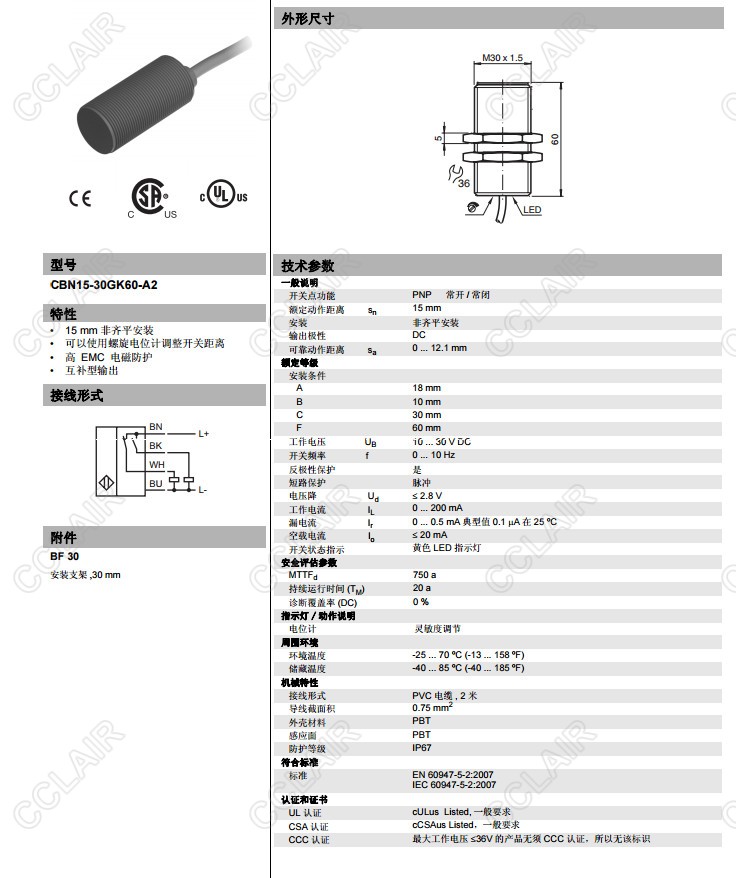 CBN15-30GK60-A2,電容式接近開(kāi)關(guān)