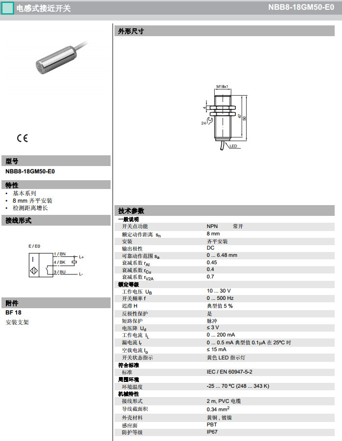 NBB8-18GM50-E0,NBB8-18GM50-E2電感式接近開關(guān)