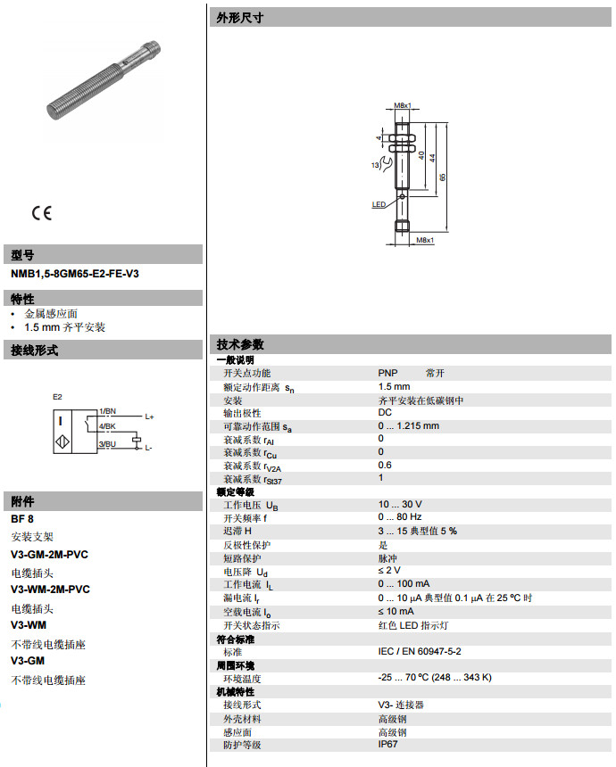 NMB1,5-8GM65-E2-FE-V3電感式接近開(kāi)關(guān)