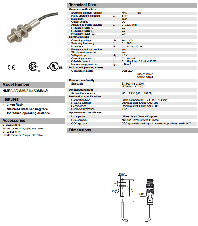 NMB3-8GM35-E0-150MM-V1電感式接近開關(guān)