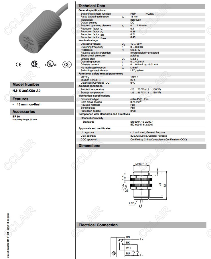 NJ15-30GK50-A2,電感式接近開關(guān)