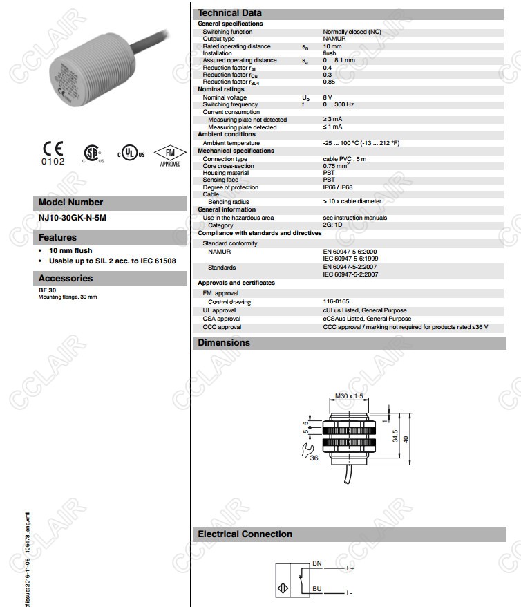 NJ10-30GK-N-5M,電感式接近開關(guān)