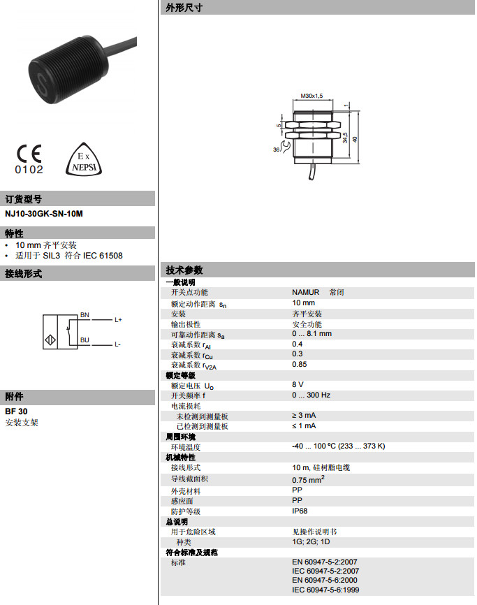 NJ10-30GK-SN-10M電感式接近開關(guān)