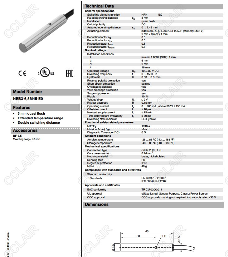 NEB3-6,5M45-E0,電感式接近開關(guān)