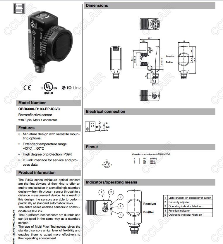 OBR6000-R103-EP-IO-V3,反射板型光電開關(guān)