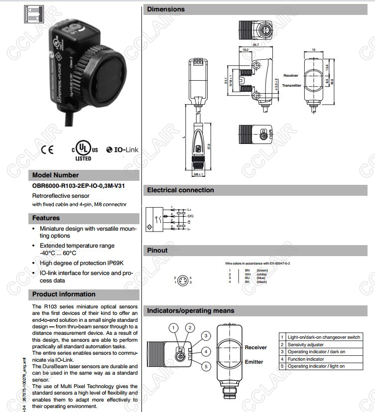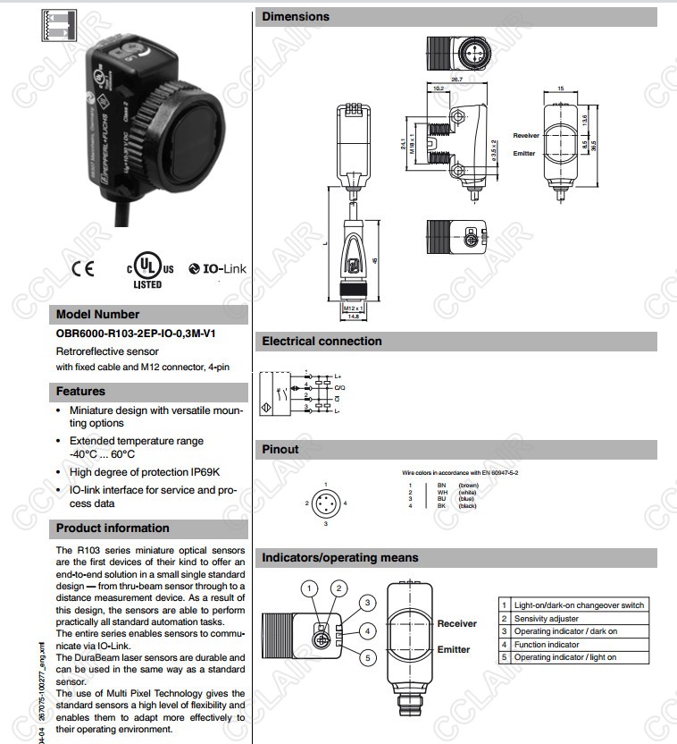 OBR6000-R103-2EP-IO,OBR6000-R103-2EP-IO-0,3M-V1,OBR6000-R103-2EP-IO-0,3M-V31,反射板型傳感器