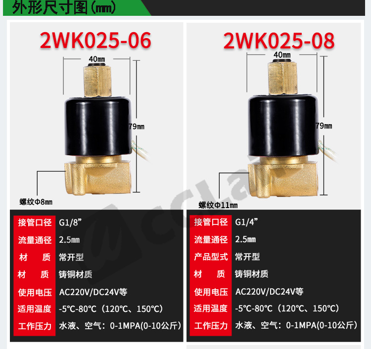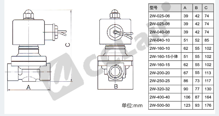 型號: 2W025-06,2W025-08,2W040-10,2W160-15,2W200-20,2W250-25,2W350-35,2W400-40,2W500-50,2W025-06V ,2W025-08