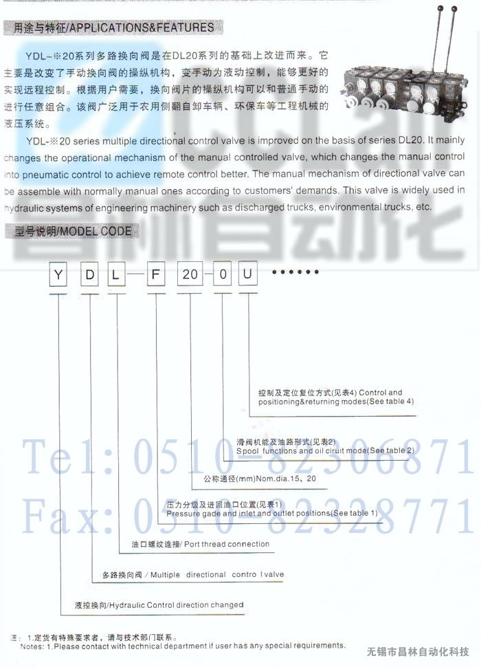 YDL-H20-KQ,YDL-H20-KU,多路換向閥