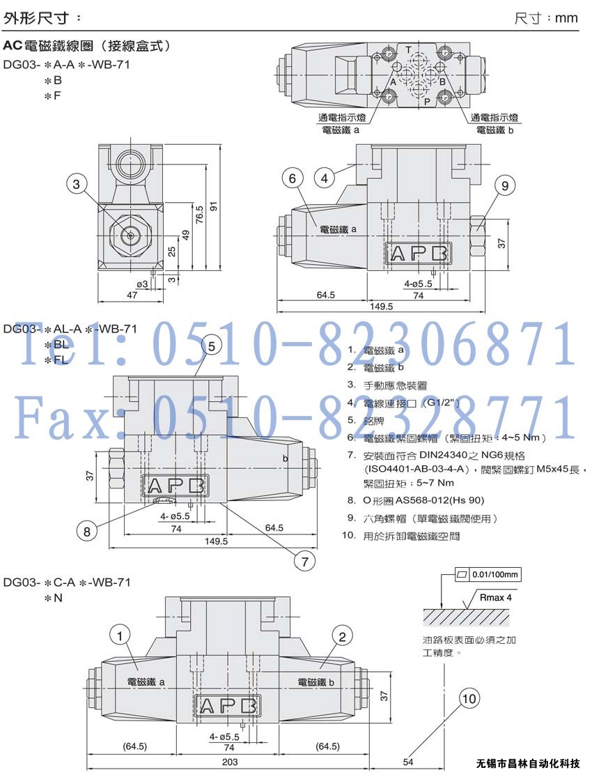 DG03-0A,DG03-1A,DG03-2A,DG03-3A,DG03-5A,DG03-6A,DG03-7A,DG03-8A,濕式電磁鐵操作換向閥