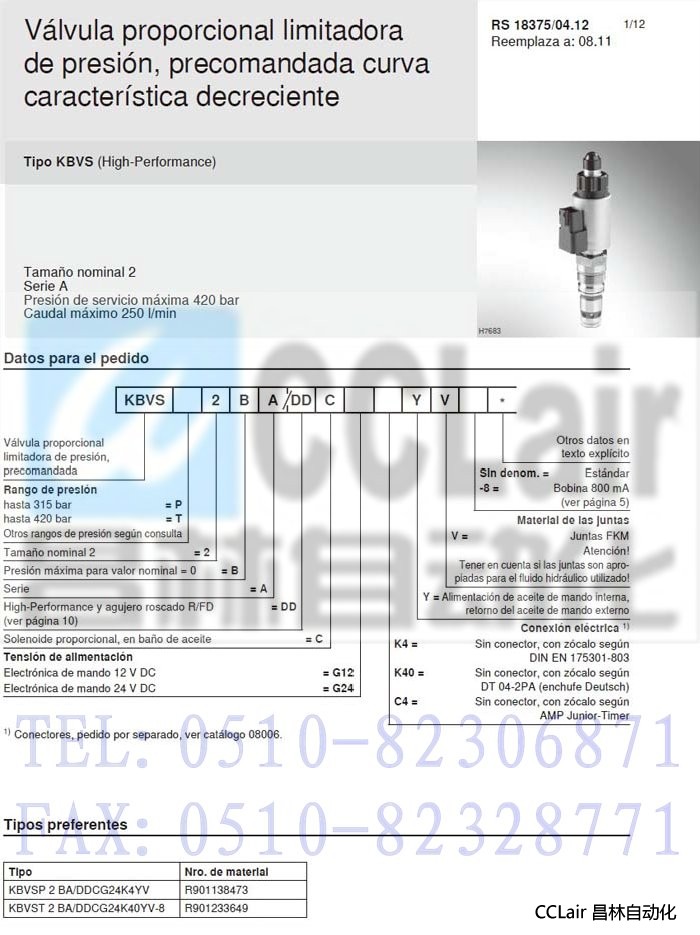 KBVSP2BA/DDCG24K4YV,KBVSP2BA/DDCG24K40YV-8,先導式比例溢流閥,力士樂REXROTH,德國力士樂