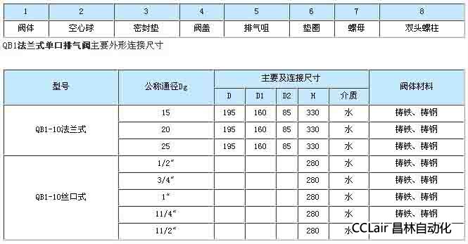 QB1法蘭式單口排氣閥用途及主要性能規(guī)范: