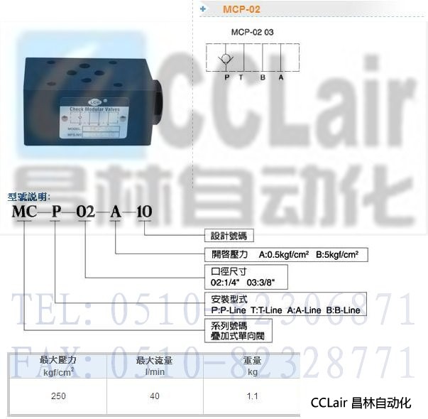 MCP-02-A-10,MCP-02-B-10,疊加式單向閥