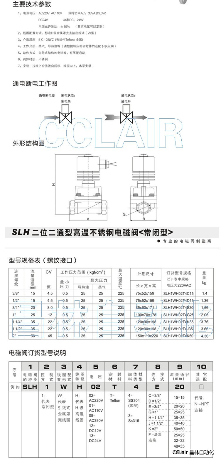 SLH1WH02T4C15,SLH1WH02T4D15,二位二通型高溫不銹鋼電磁閥(常閉型)