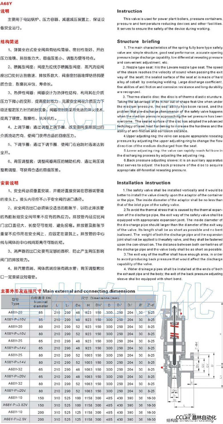 A68Y-20,A68Y-P54-10V,A68Y-25,TFA68E210/550V1,TFA68SB160/440C1,彈簧全啟式安全閥