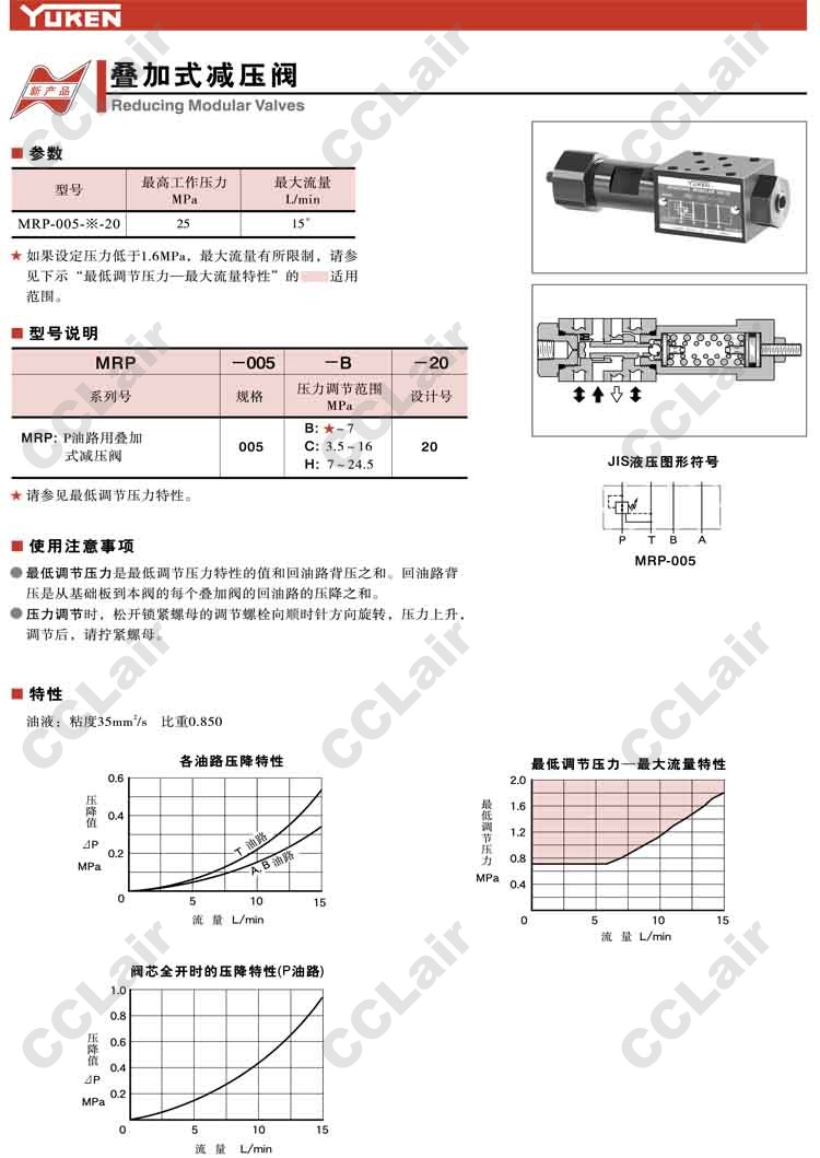 MRP-005-B-20,MRP-005-C-20,MRP-005-H-20,疊加式減壓閥,YUCIYUKEN榆次油研