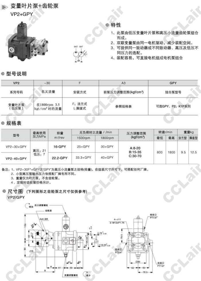 VP2-30+GPY,VP2-40+GPY,變量葉片泵+齒輪泵,無(wú)錫昌林