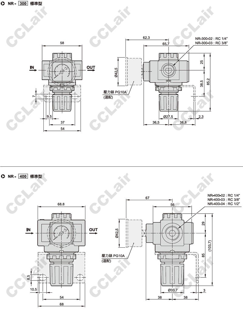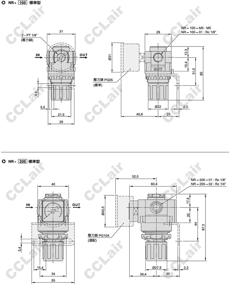 型號: 氣立可(chelic),NR-100,NR-200,NR-300,NR-400,NR-450,NR-500,NR-200-01-G-H-F1,NR-300-02-G-H-F1,調(diào)壓器