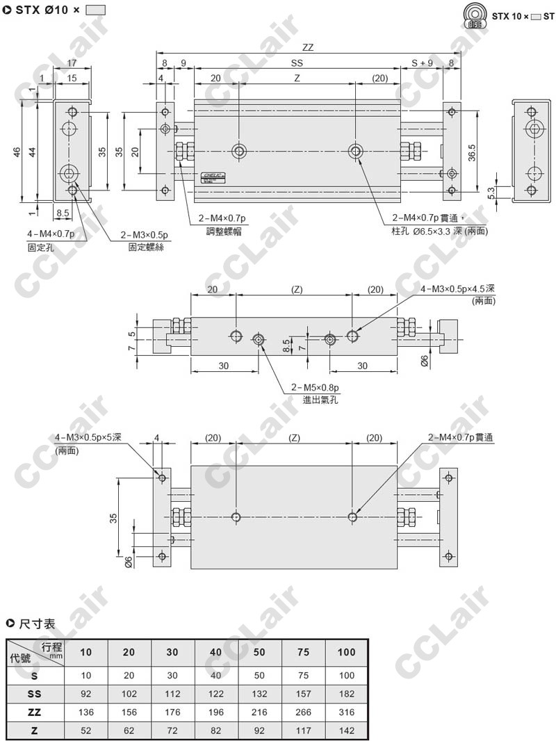 STX10*20-ST2,STX10*30-ST2,STX10*40-ST2,STX10*50-ST2,STX10*75-ST2,STX10*100-ST2,雙軸滑臺氣缸