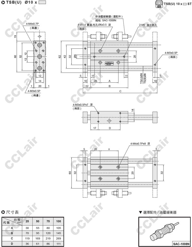 TSB10*25-SE2,TSB10*50-SE2,TSB10*75-SE2,TSB10*100-SE2,導(dǎo)桿滑塊氣缸